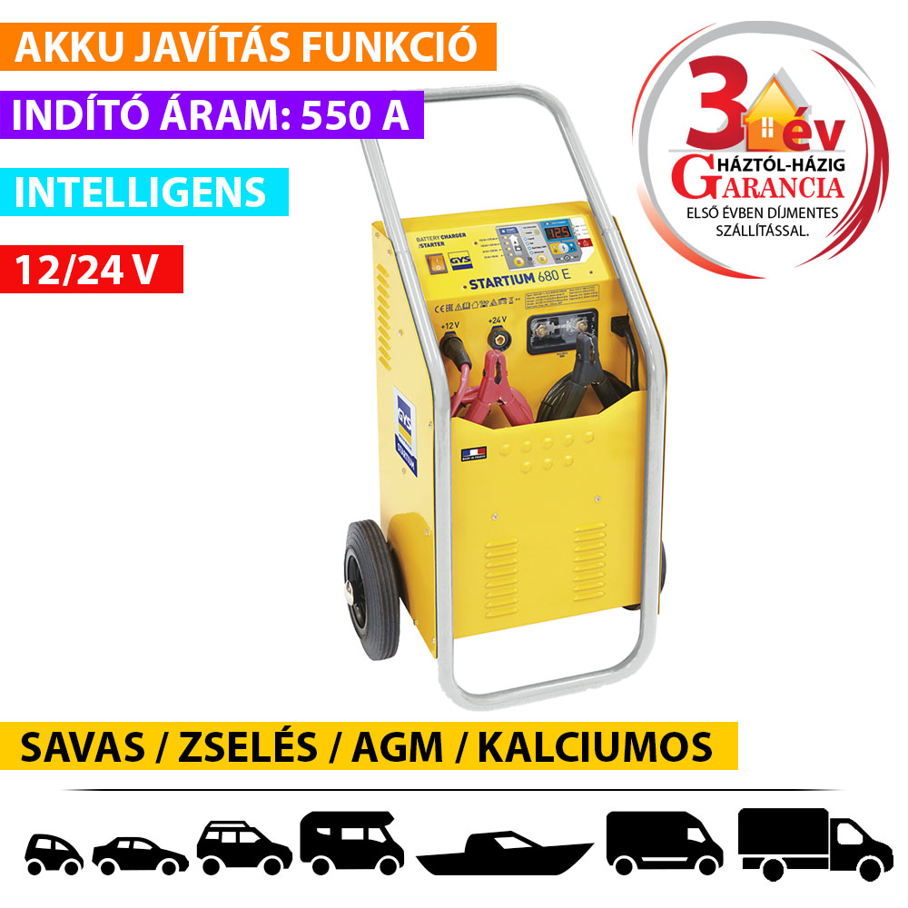 100%-os töltés: a Startium 680E 100%-os töltést garantál minden fajta ólomakkumulátornak: zselés vagy folyékony elektrolittal töltött, AGM, Start&Stop, kalciumos, VRLA, EFB, ...